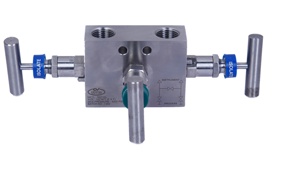 With threaded vertical port inlets and outlets. The isolating bonnets are positioned on the left and right hand side and the equalizing bonnet is positioned on the front. This manifold is specially designed as miniature valve to be remote mounted.
